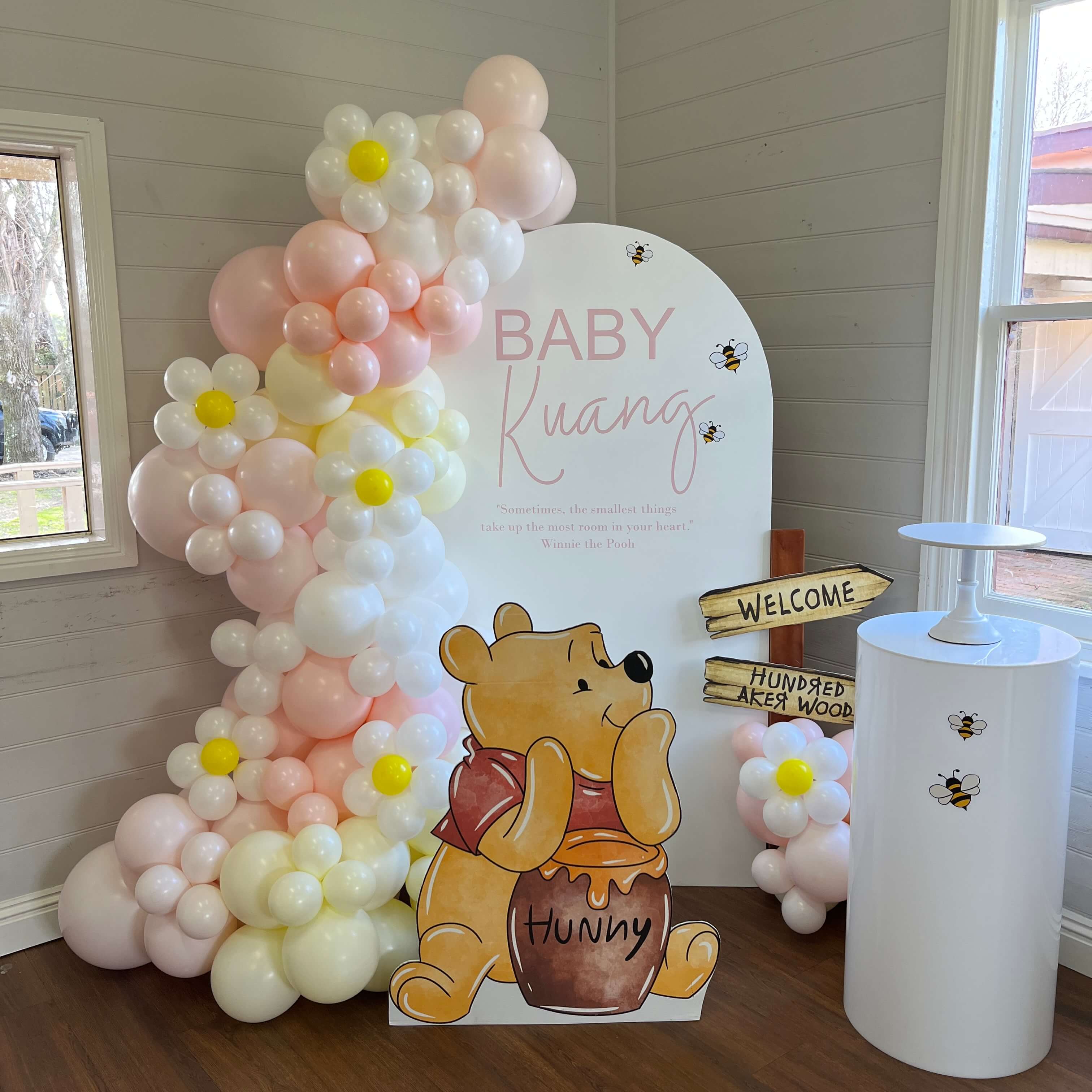 Celebrate your next event with our Pink Daisy Winnie the Pooh Balloon Garland Package in Melbourne. Perfect for gender reveals, baby showers, and first birthdays, this sweet ready-made setup brings a touch of timeless nostalgia to your celebration.